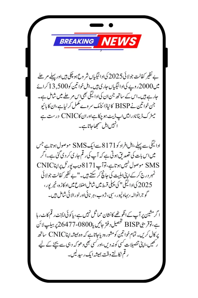 BISP 8171 Payment Beneficiaries July 2025 13500 Disbursement Beneficiaries of BISP payments in July 2025 can now check their payments from home through SMS or through the web portal. Just wait for a verified SMS from BISP to 8171 and be alert against false . In this program, people who cheated and caused problems in the system have been removed from the system and the system has been updated.