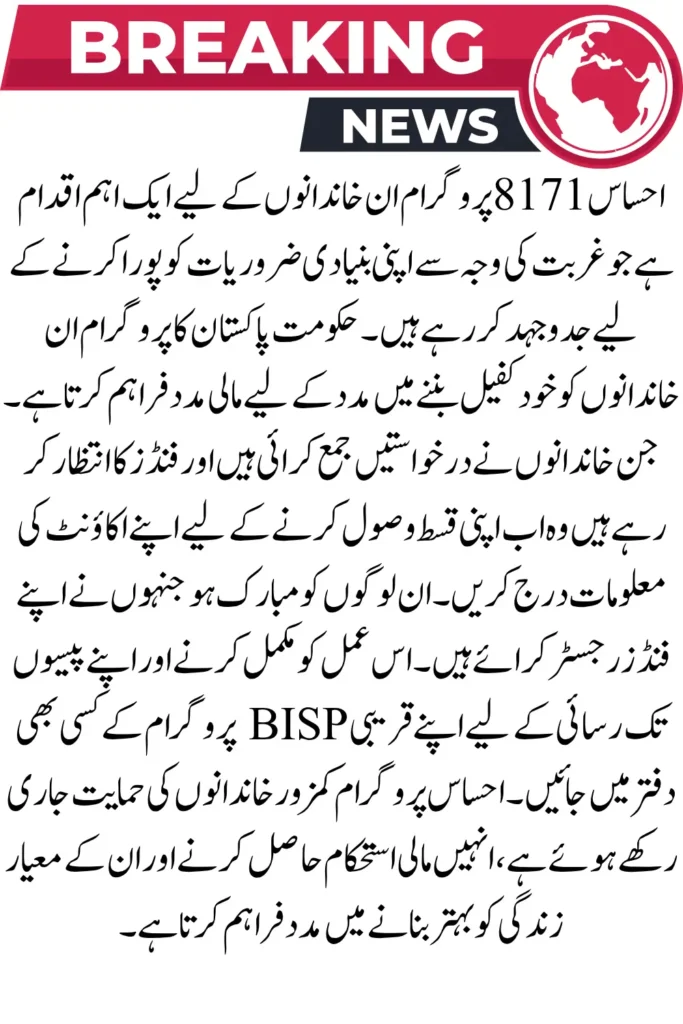 Latest Update on the Ehsaas 8171 New Installment